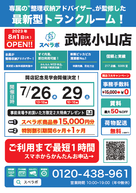 オープンに合わせ7月26日(水)、29日(土)に見学会を実施しますので、ぜひ【スペラボ・武蔵小山店】にお越しくださいませ。