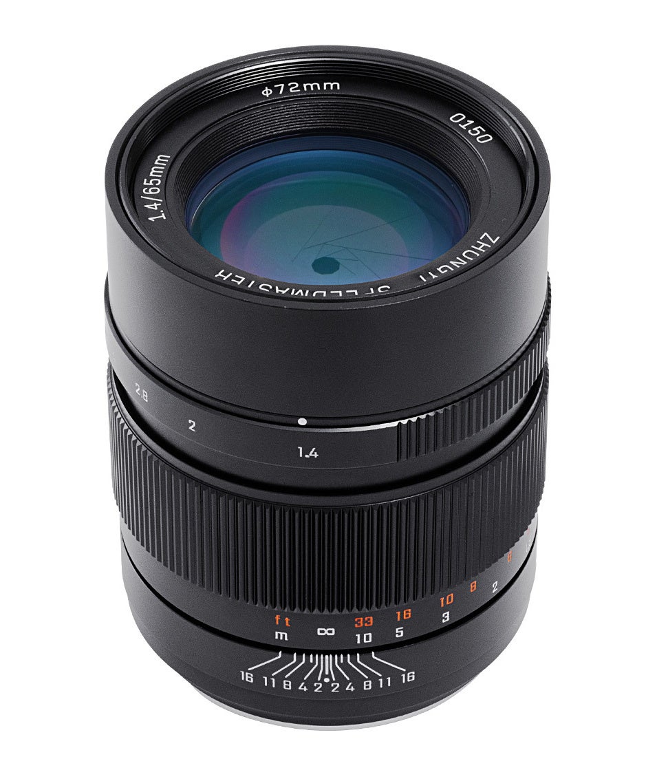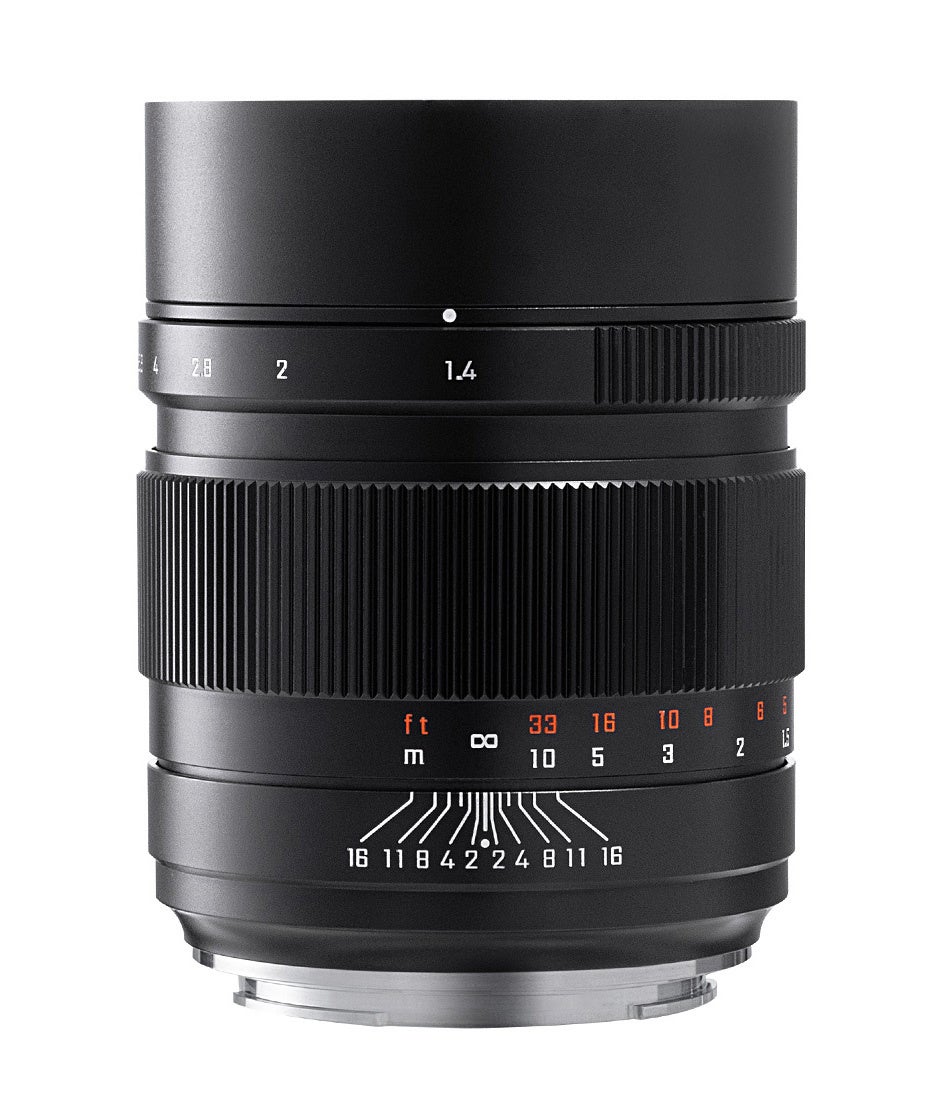 中一光学(ちゅういちこうがく) SPEEDMASTER(スピードマスター) 65mm F1.4は、中判のイメージセンサー(43.8×32.9mm)に対応した超大口径の標準レンズです。レンズ構成はEDレンズ1枚を含む7群11。開放F1.4から卓越した描写力を持ちながら、柔らかで自然なボケ味が得られます。また、レンズの保護等に便利なレンズフード(逆付け収納型)を付属しており、フードをレンズから取り外し、逆にして取り付け使用します。
