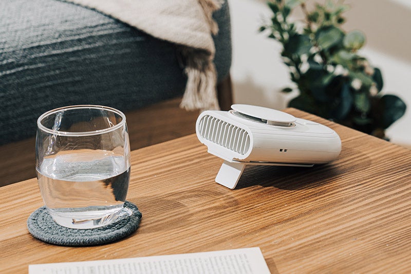 背面のスタンドを使えば、デスクファンとして卓上でも使用できます。