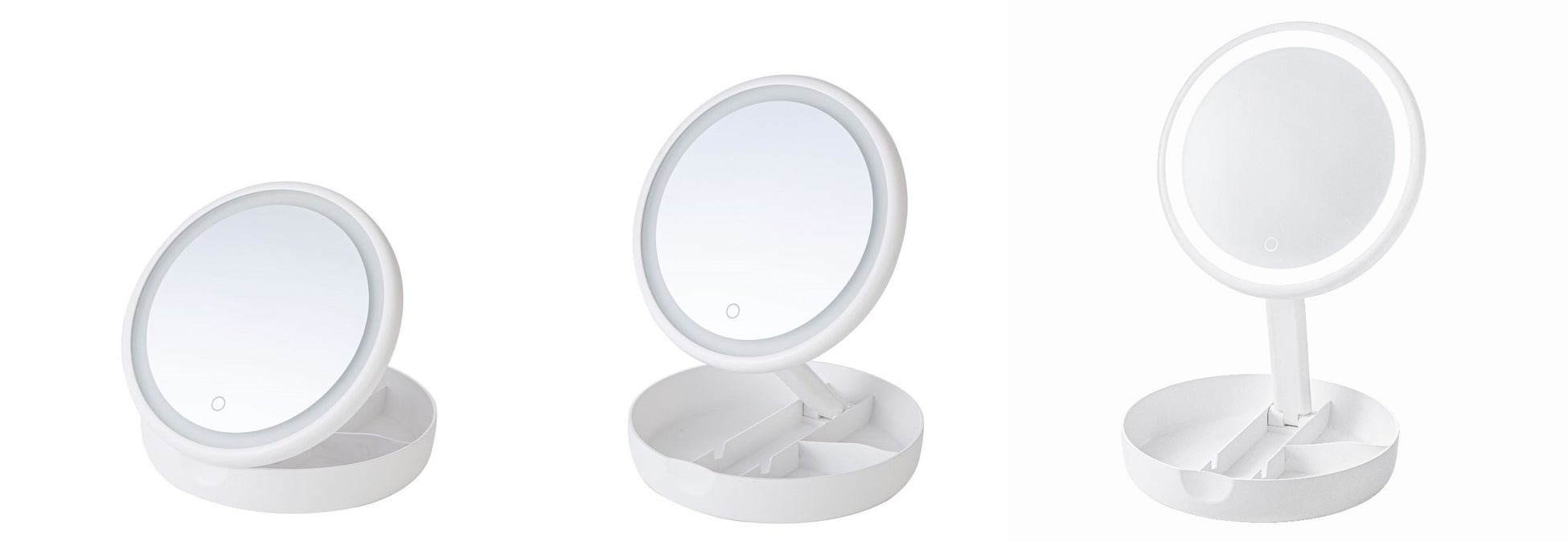 折りたたみ式なので持ち運び簡単!小物が収納できるLEDミラーをご紹介