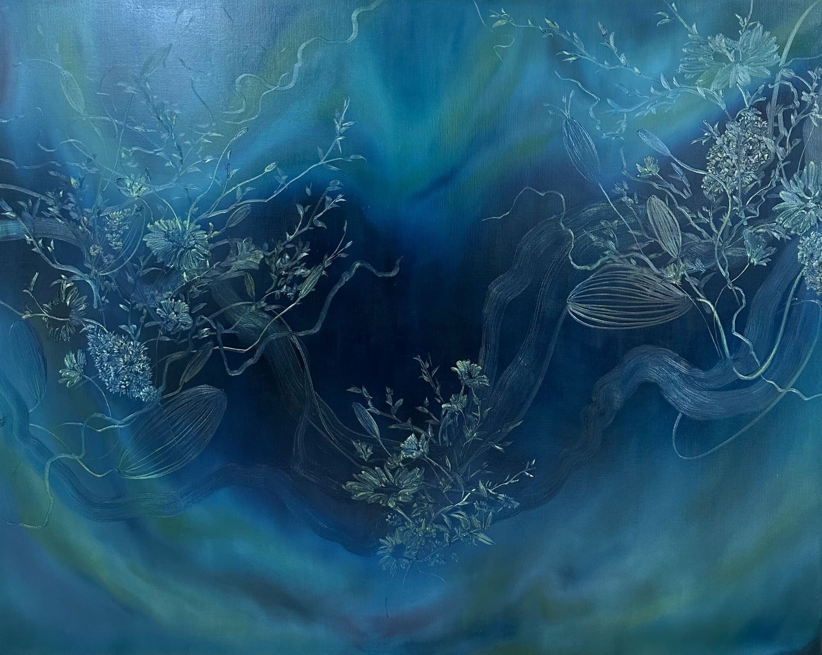 ruteNは、2020年より「絵描き」として活動を開始し、早々にアートコンペティションで頭角を現します。2023年には華道の一葉式いけ花の教授免状を取得し、華道の感性も取り込み自然界の生命の循環やエネルギーを可視化。「流転している世界」をテーマに作品制作を行なっています。