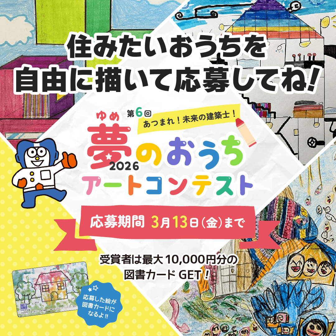 『夢のおうちアートコンテスト』は、子どもたちにとって「こんなおうちに住んでみたい」「こんな家があればすてきだな!」と思う“夢のお家”のアート作品を募集するコンテストです。第6回目となる今回は、全国から合計717件もの創造性あふれる作品をお寄せいただきました。募集は「ぬりえ」と「おえかき」の2部門で行い、当社社員と外部デザイナーが審査しました。また今回は特別に、探究型学習の第一人者である矢萩邦彦氏をお迎えし、専門的な知見から子どもたちの豊かな発想を評価し、受賞作品への個別コメントを通じて、次世代の創造力を多角的に応援・サポートしています。