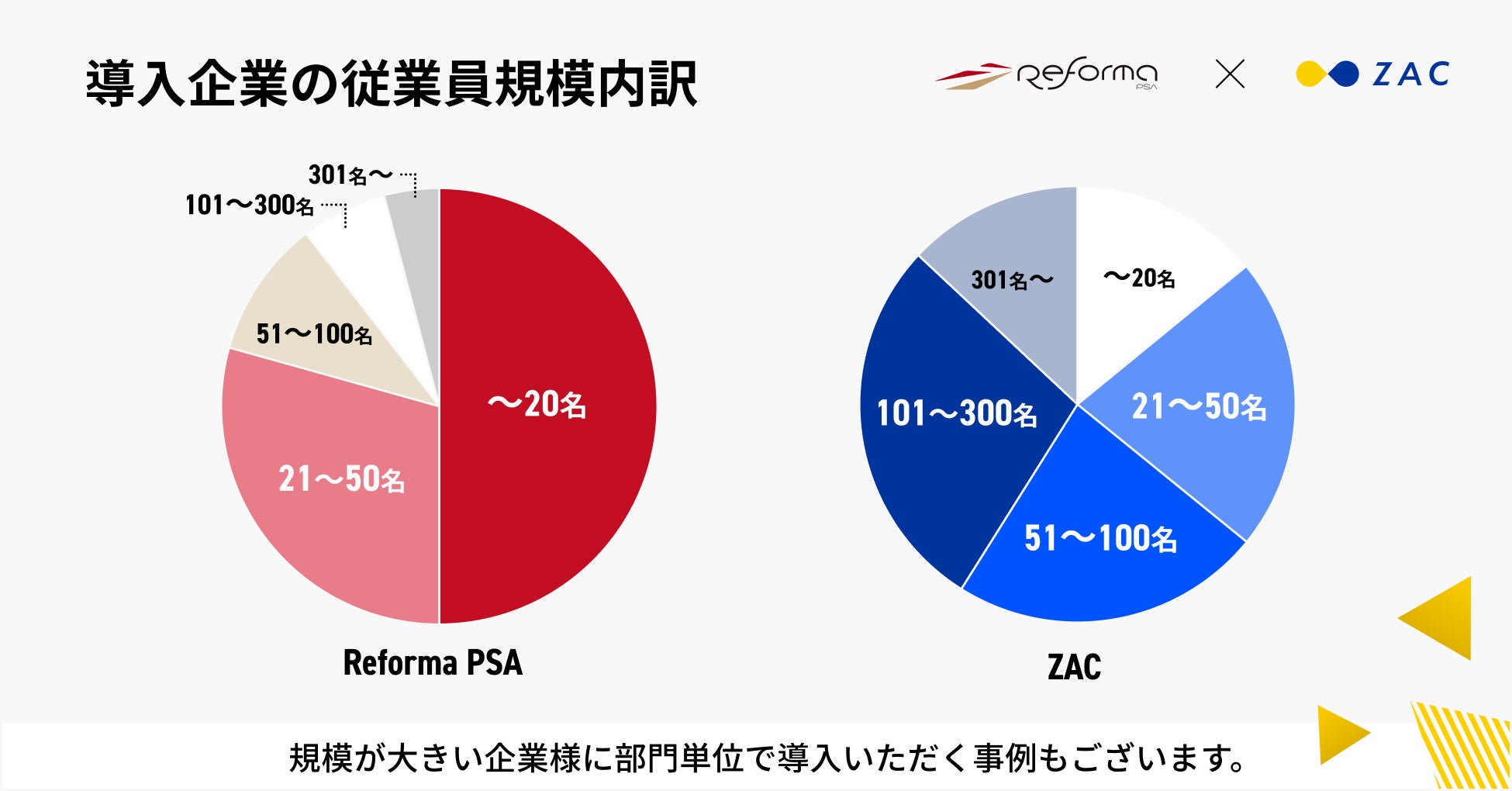また、「親会社でZAC、子会社でReforma PSA」など親会社・子会社でそれぞれ「ZAC」と「Reforma PSA」をご導入される事例も増えております。