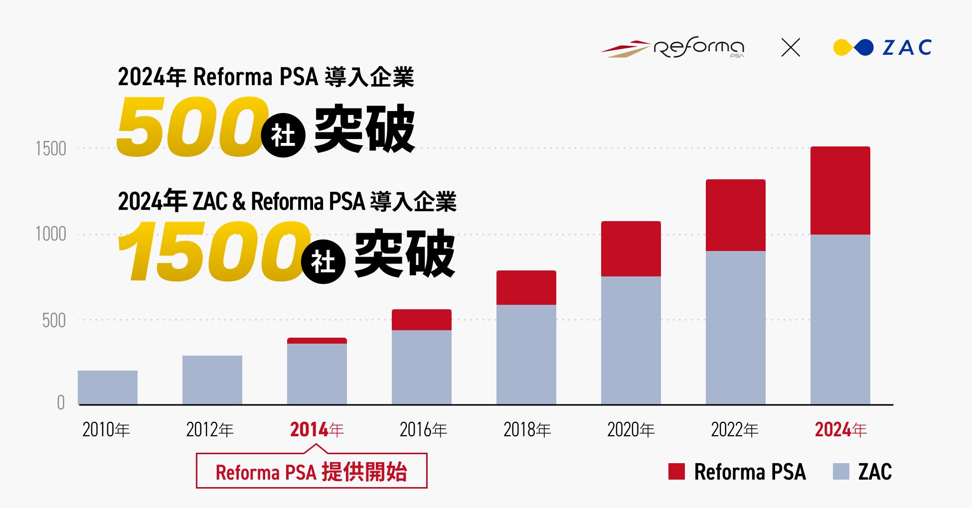 現在は「ZAC」(「ZAC Enterprise」を含む)、「Reforma PSA」の合計導入社数が1500社を突破するなど、多くのお客様にお使いいただいております。