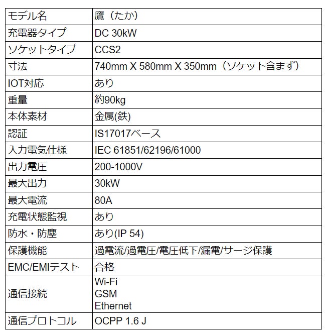 「TAKA(鷹)」:EV四輪の急速充電ニーズに対応した新型30kW急速充電器