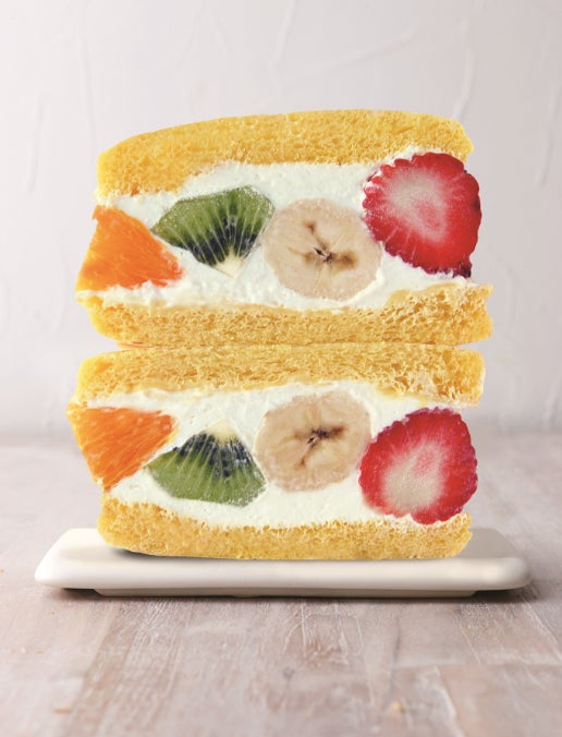 コクのある濃厚な北海道産クリーム&なめらかカスタードのWクリームに、いちご・オレンジ・キウイ・バナナの4種のフルーツを宝石箱のように詰め合わせた、シェフズプレスの看板商品です。