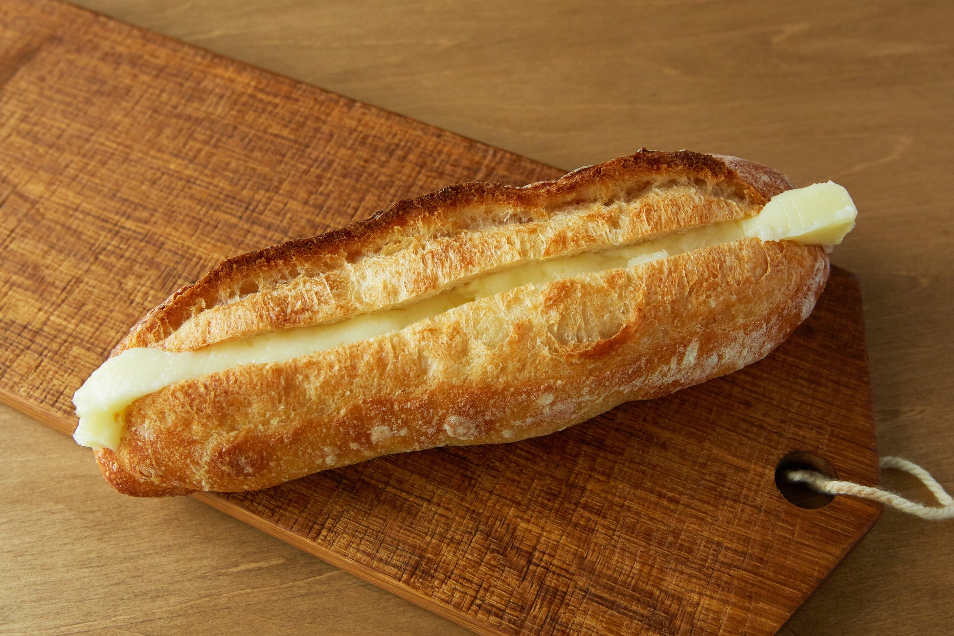 カルピスバターを使用した自家製ミルクバターをミニバゲットにたっぷりはさみました。