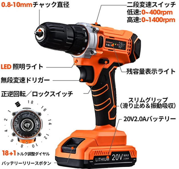 DINSHARE20V電動ドリルドライバー JC-106