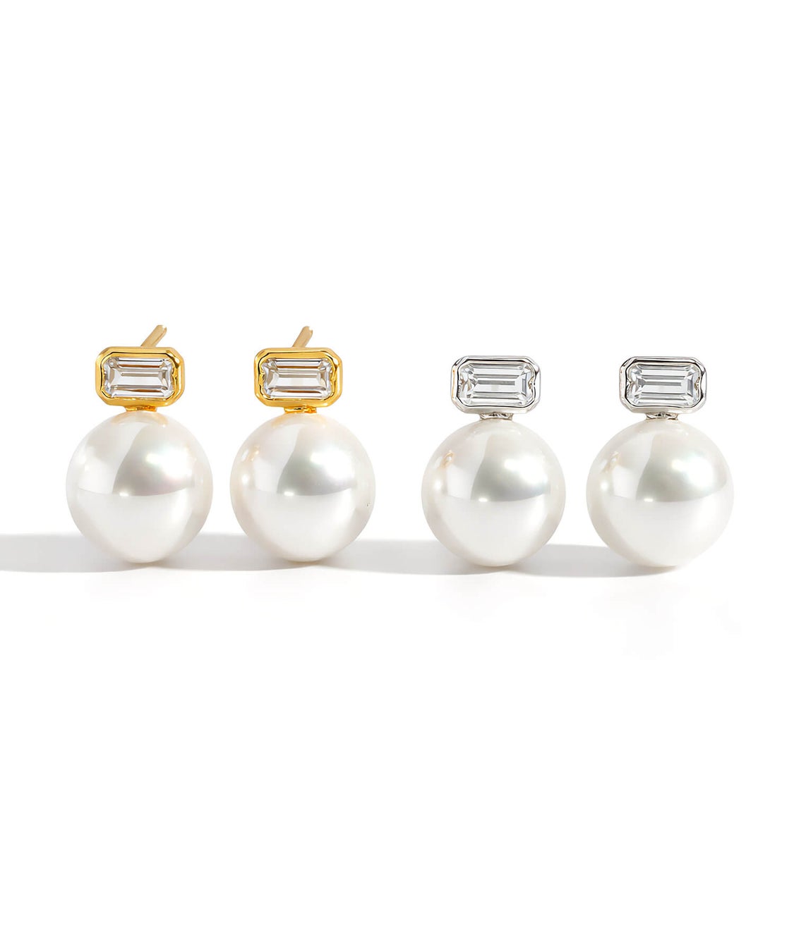 シルバー925 10mmパール バゲットカットジェム ピアス CADREA-PE