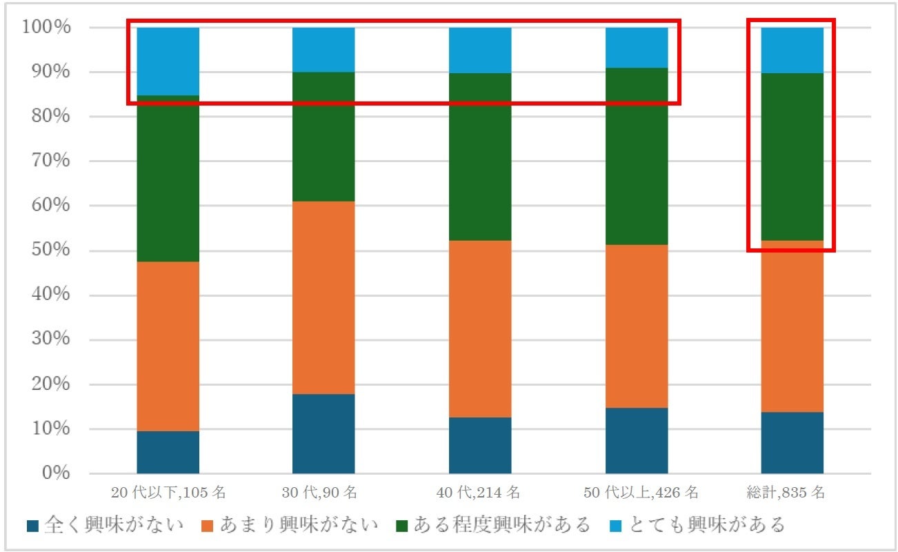 ・「とても興味がある」と回答した方は若年層になるほど割合が高い
