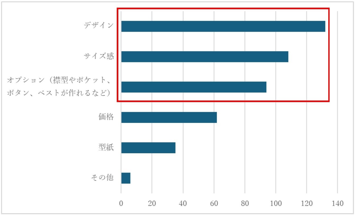 ・メンズスタイルのオーダースーツに関心がある女性はデザイン、サイズ感、オプションに魅力を感じている