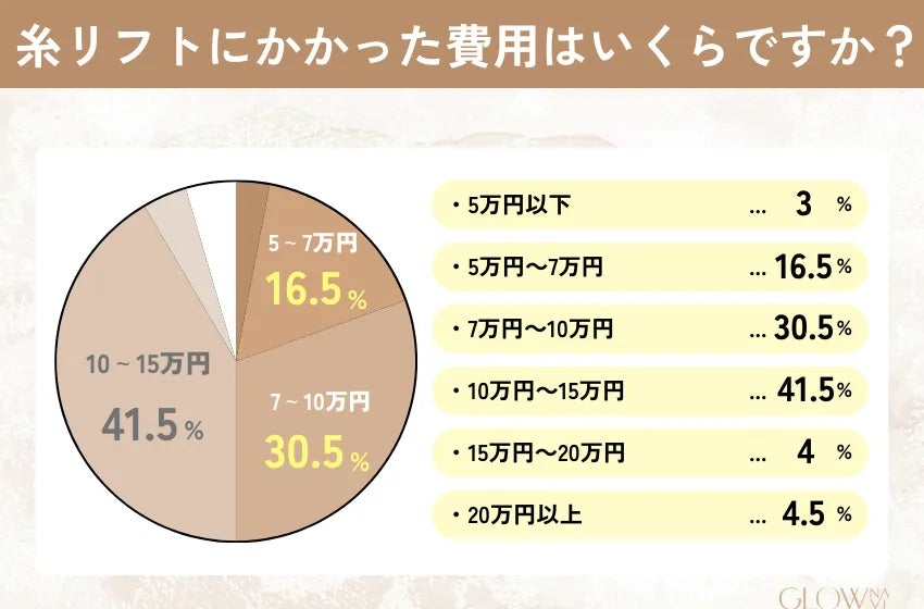 糸リフトの費用として1番多いのは、「10万円~15万円」である