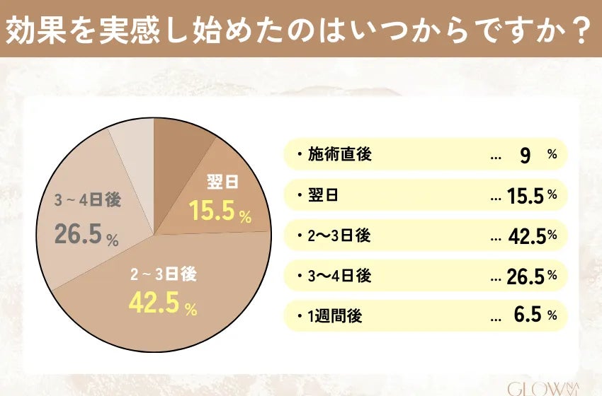 「2日~3日後」から効果を実感し始めた方が多いという結果でした。