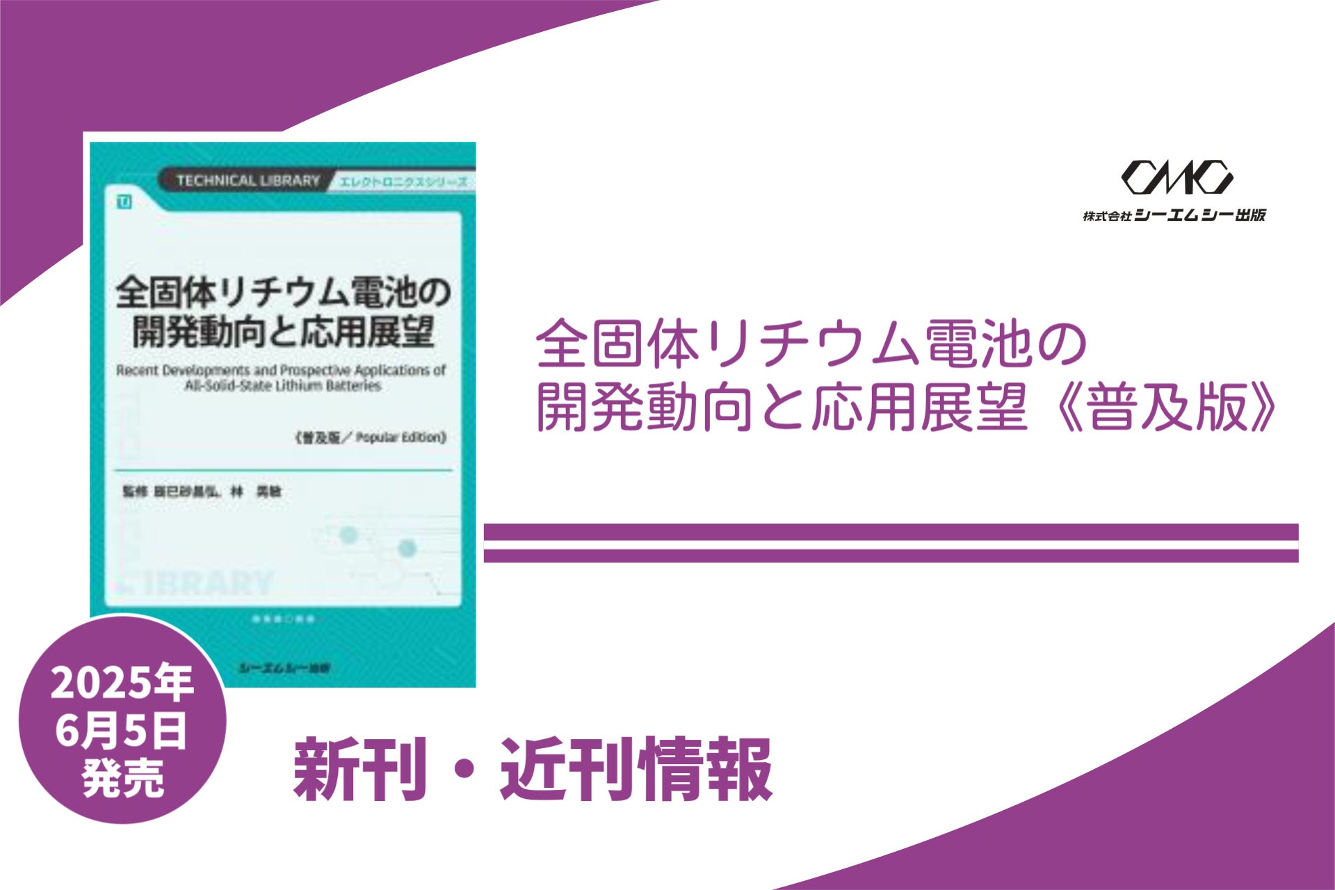 『全固体リチウム電池の開発動向と応用展望《普及版》』(監修:辰巳砂昌弘、林 晃敏)(定価:税込6,490円)を2025年6月5日に発刊いたします。詳細は以下をご覧ください。