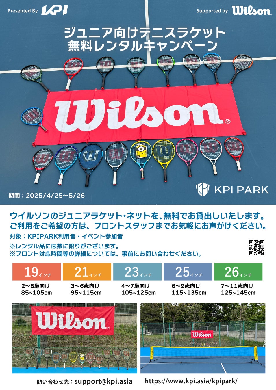 <KPI PARK>ジュニア向けテニスラケットの無料レンタルキャンペーンをKPIPARKにて期間限定で実施中