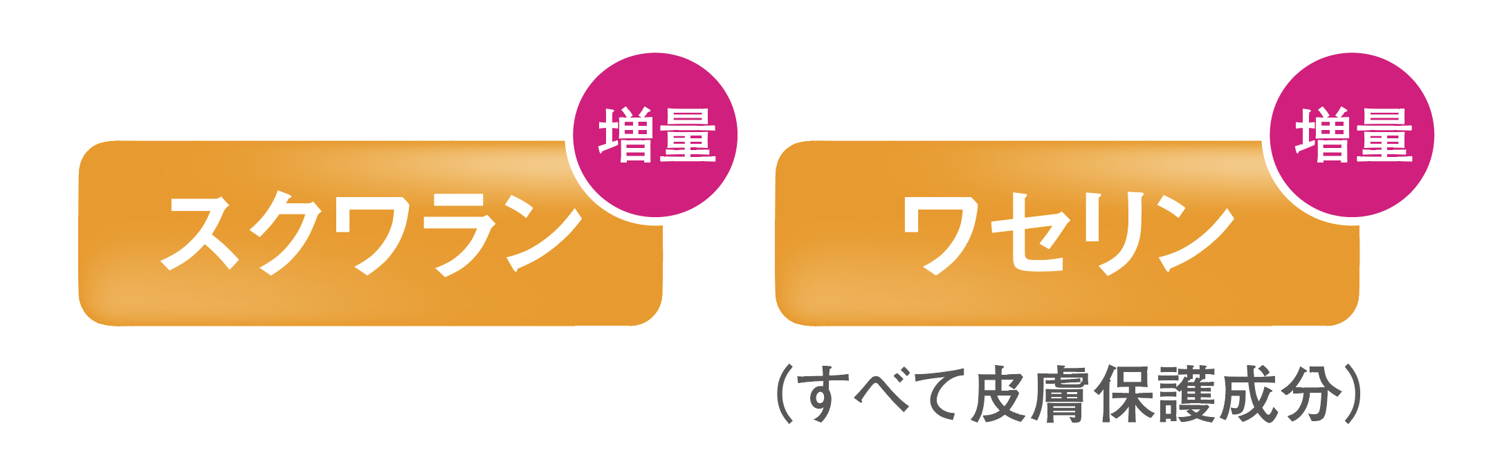 皮脂の役割をサポートするスクワラン、ワセリンを増量。水分を閉じ込め、お肌のうるおいを持続させます。