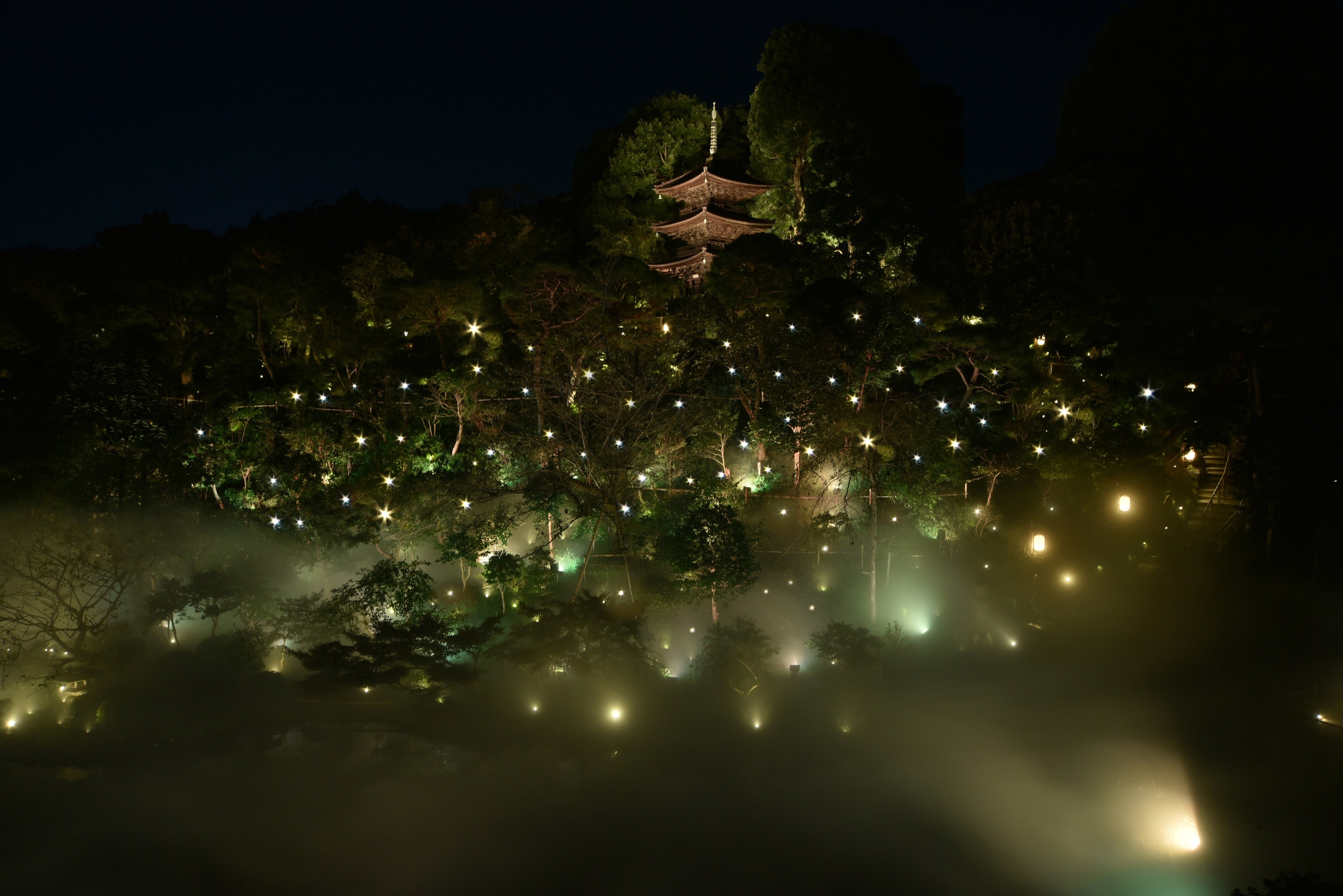 散策できる広大な庭園には、国の有形文化財の三重塔や茶室、史跡があり、また春の桜、きらめく新緑、初夏の蛍、夏の涼やかな滝のしぶき、紅葉、雪景色の中の椿と、四季の風情が東京にいることを忘れさせる特別なひとときをお過ごしいただけます。又、国内最大級の霧の庭園演出「東京雲海」も都心の絶景として通年お楽しみいただけます。