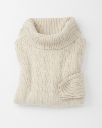 カラフルなネップ糸で編まれた編地の表情が美しいボトルネックニット。イタリア糸を使用した柔らかで上質なケーブルニットプルオーバー。生地の厚さも程よく、アウターと合わせても暖かく快適な着心地に。(価格:¥18,000+税 / カラ―:ベージュ、ネイビー / 素材:毛100%)