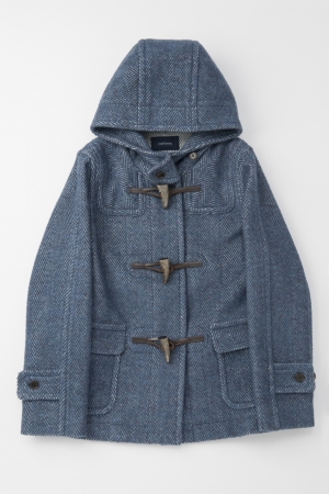 上質な英国羊毛を使用した、トラッドなヘリンボン柄のショート丈のダッフルコート。トグル部分には本水牛と本革を使用した本格的な仕様。ボトムスを選ばずにワンランク上のおしゃれを楽しめます。(価格:¥49,000+税 / カラ―:ブラック、ブルー / 素材:ウール90%アクリル4%ナイロン4%)