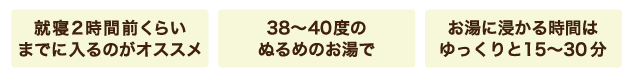 就寝2時間前くらいに入浴を済ませておくと、良い睡眠にもつながりやすくなります。