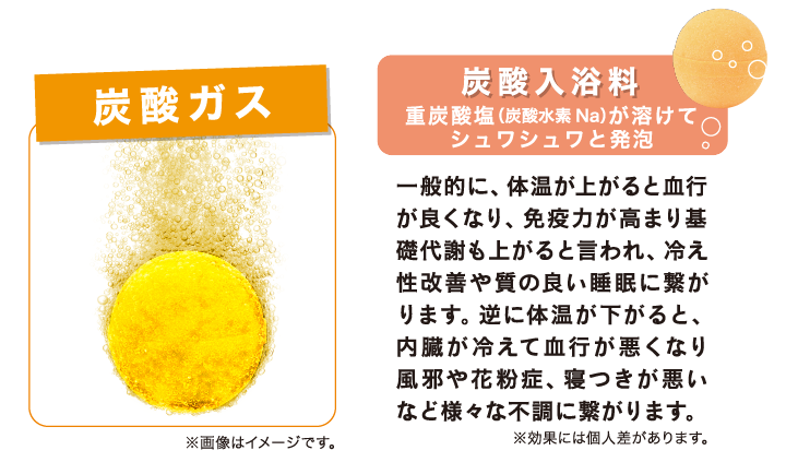 重炭酸塩※1がお湯に溶けてシュワシュワと発泡していきます。