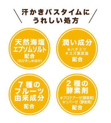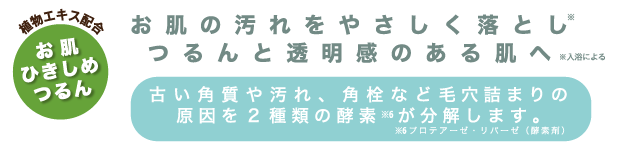 さらに!2種の酵素剤を配合。入浴することでお肌の汚れをやさしく落とし、つるんと透明感のあるお肌へ。