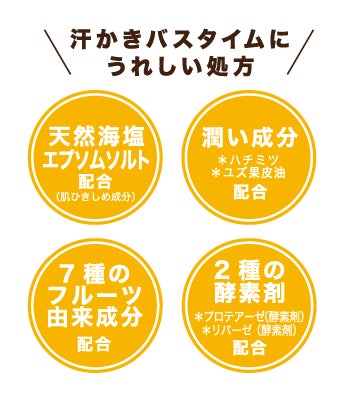 ゆずの香り広がる!2種の酵素剤を配合した重炭酸塩バスボム※1でほっこり汗かき習慣!