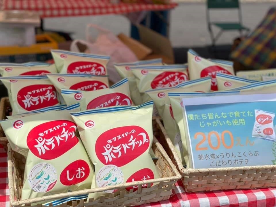 うりんこくらぶは、障がいの有無に関わらず、参加者が成長し合える体験企画などを開催する子育て支援団体です。昨年度も親子農業体験企画「タネからはじまるプロジェクト」でじゃがいもを栽培し、菊水堂が農福連携振興事業としてポテトチップスに加工しました。「ぱる★てらす」で300袋を販売したところ、完売する人気となりました。