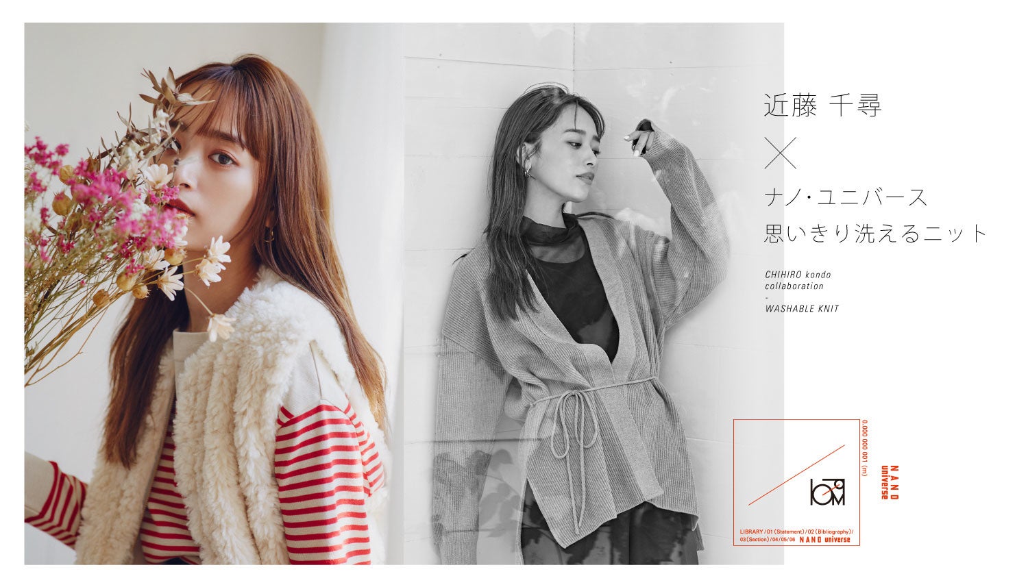 モデル・タレントとして活躍する近藤千尋さんとナノ・ユニバースのコラボレーション商品を発売。今コラボではナノ・ユニバースの人気ニットシリーズ「思いきり洗えるニット」を限定復刻。気軽に洗えてシーズンレスで活躍する万能ニットは今秋、ワードローブの主役に。