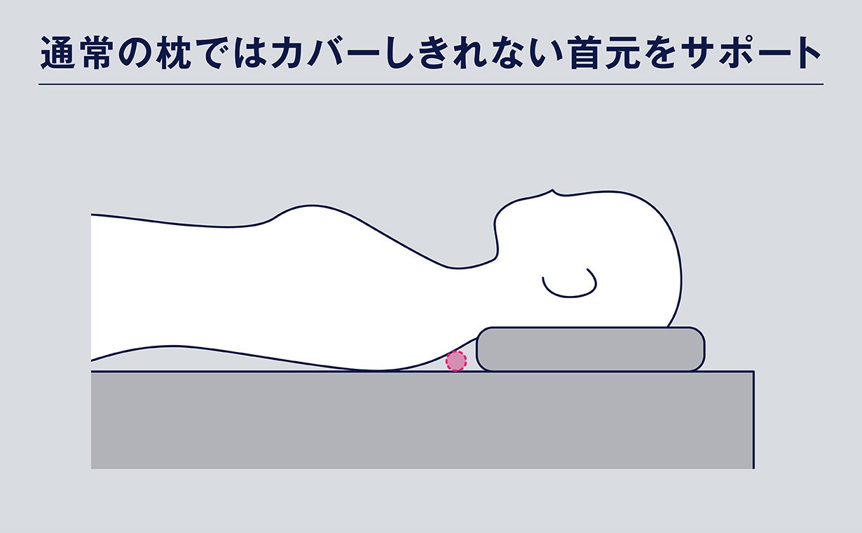 西川のまくら開発を応用して、首元にパッドを内蔵しています。首と寝具の隙間を埋めることで、首にかかる圧力を軽減します。