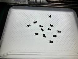 上記の課題を解決するために、TEDではトライアルとして、「めばかり君」によるアズビル太信のコネクタなどのサンプル計数を行いました。その結果、瞬時にカウントでき、導入前と比較して重量決め作業時間の大幅な短縮ができることがわかりました。人手作業の削減にもつながると評価され、「めばかり君」の採用に至りました。現在、アズビル太信で扱う約20,000点の部品のうち約2,000点の小さく細かい部品を「めばかり君」でカウントしています。