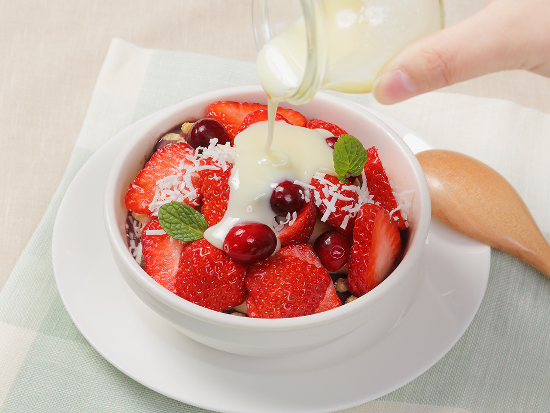 ハワイアン・パンケーキの中でも不動の人気「あまおう苺のパンケーキ」が今年も登場!大粒でフレッシュなあまおう苺は、ジューシーな果肉と香り高く濃厚な味わいが特徴。甘みと酸味のバランスが良くまさに苺の王様。