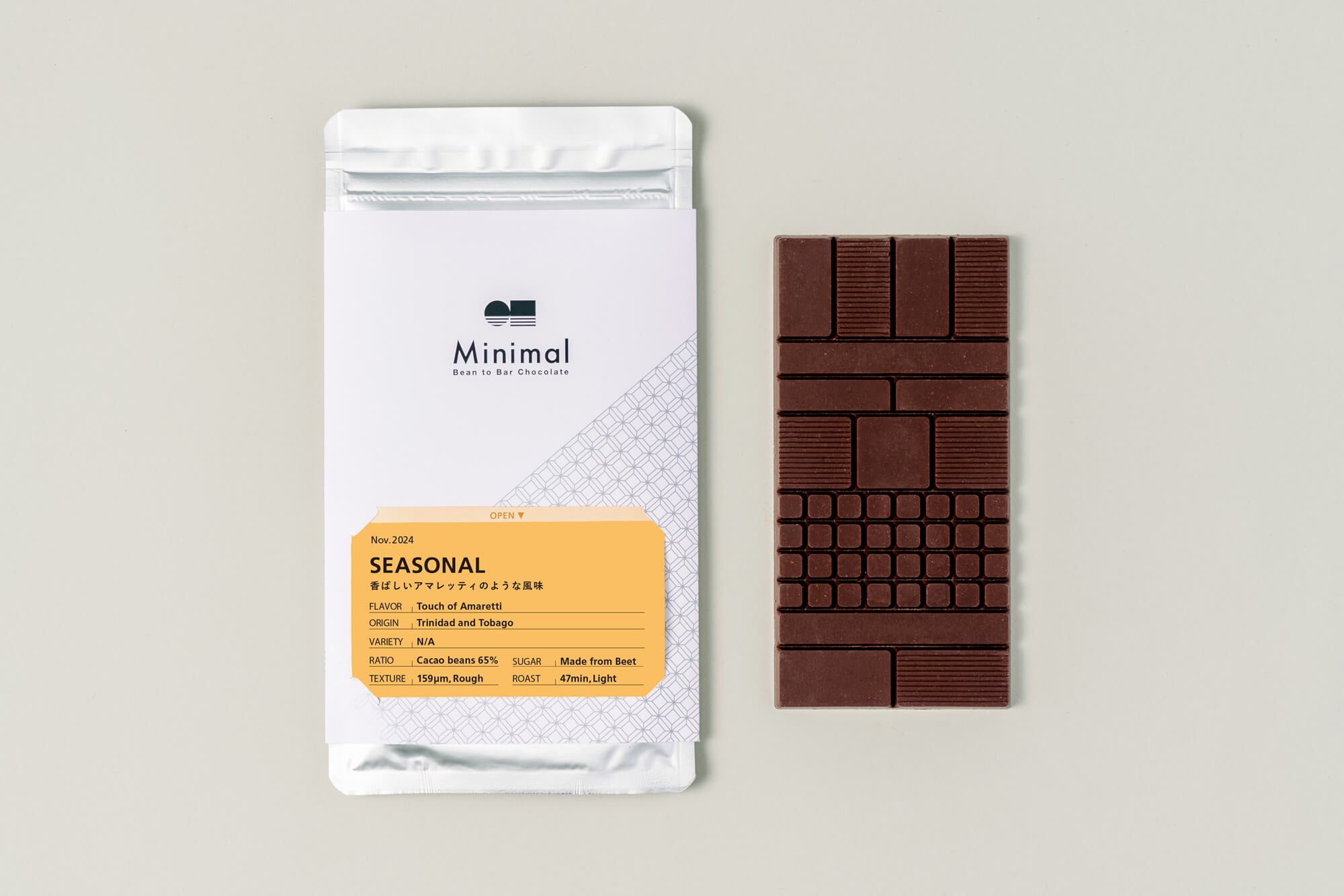 株式会社βace(東京都渋谷区、代表取締役:山下貴嗣)が展開する、日本発のスペシャルティチョコレート専門店 「Minimal - Bean to Bar Chocolate - (ミニマル)」( https://mini-mal.tokyo/ ) は、季節限定の板チョコレート「SEASONAL トリニダード・トバゴ65%」を、オンラインストアでは2024年12月1日より、富ヶ谷本店・麻布台ヒルズ店では2024年12月2日より、期間限定で販売いたします。
