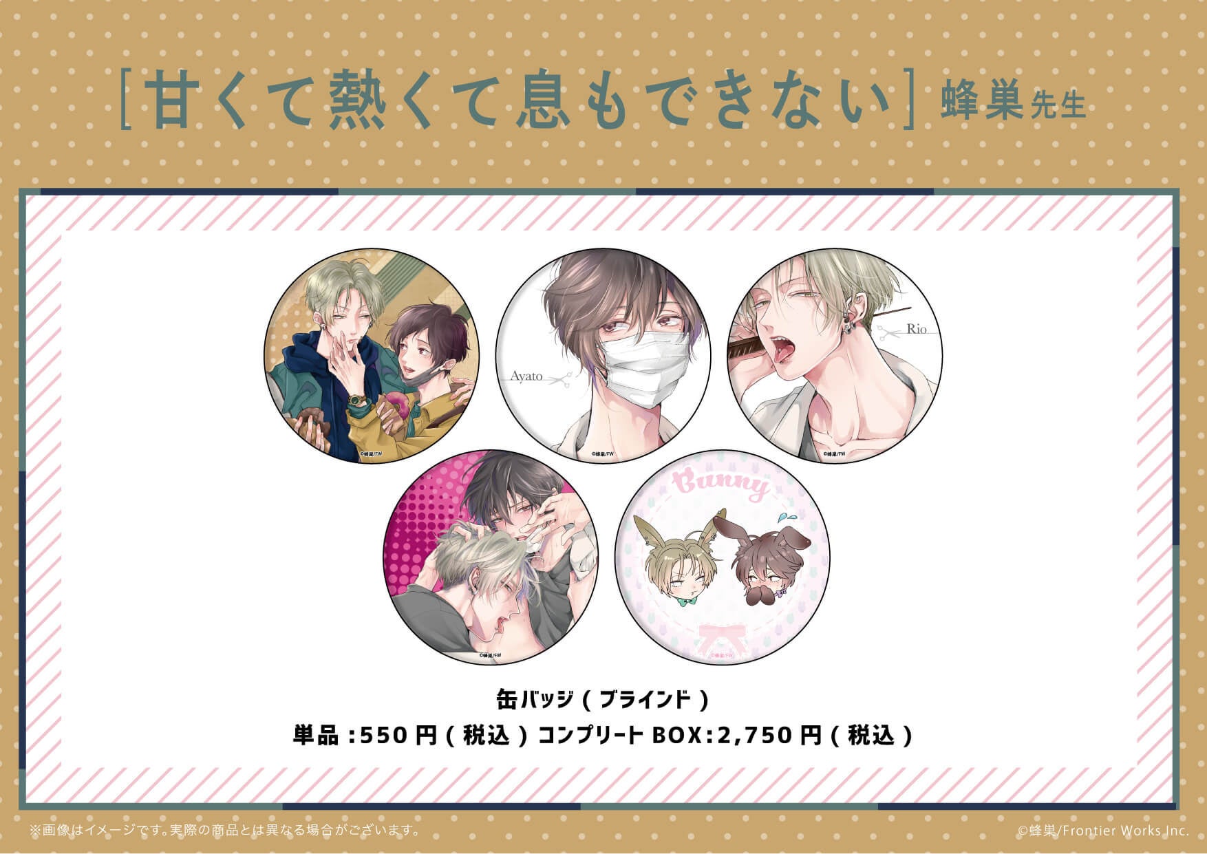 株式会社A3は、蜂巣先生が手掛ける『甘くて熱くて息もできない』のドラマCD発売を記念してPOP UP SHOP開催、ならびに新作グッズの発売を開始いたしました。