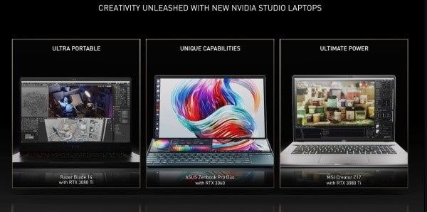 これらのソフトウェアはすべて、RTX 3080 Tiを搭載した新しいウルトラ ポータブルのRazer Blade 14のようなスリムなシステムで利用できます。