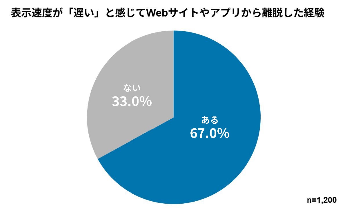 「表示速度が『遅い』と感じて、そのWebサイトやアプリから離脱した経験はありますか」という質問に対し、67.0%が『ある』と回答しました。