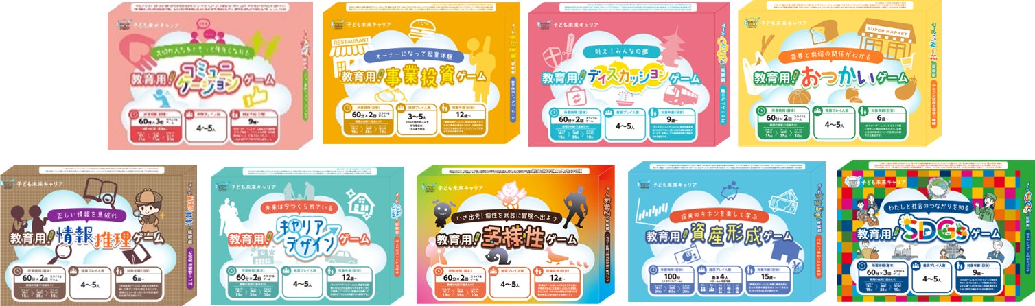 当社では、キャリア教育を学べるボードゲーム教材「子ども未来キャリア」を多くの教育現場で活用いただくことで、子どもたちの将来に向けた新しい取り組みを支援しております。