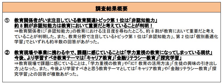 ① 教育関係者がいま注目している教育関連トピック第1位は「非認知能力」