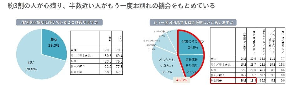 さらに、「ある」と回答した方のうち、45.3%が「もう一度お別れする機会が欲しい」と回答。特に、葬儀に参列できなかった人は、55.2%が望んでいることが分かりました。