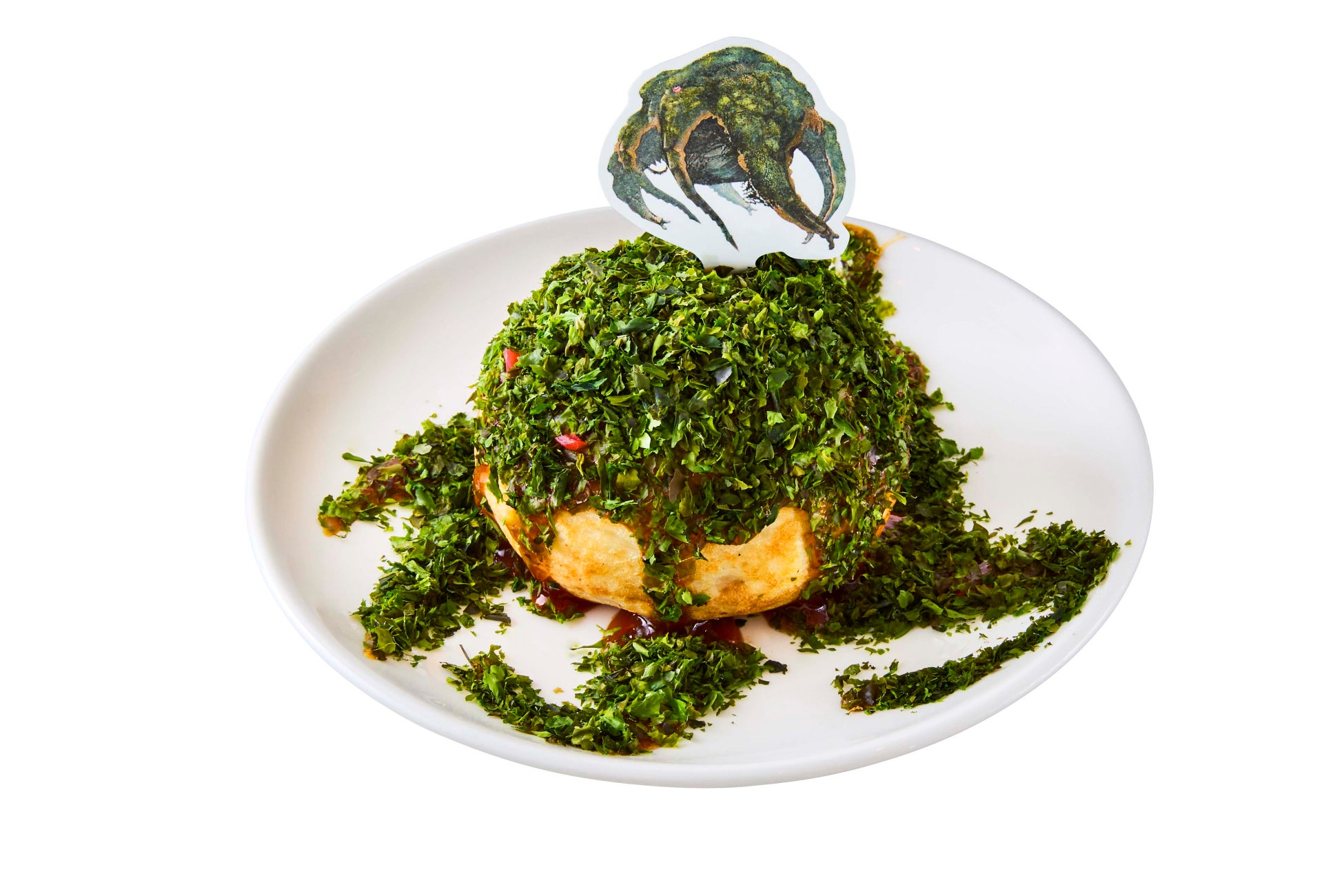 ゴア・マガラとシャガルマガラ、2体のモンスターを1皿で楽しめる1品。ゴア・マガラの鱗粉を紫のりで、シャガルマガラの翼をファルファッレで表現しました。紫のりとカルボナーラソースは相性抜群です。