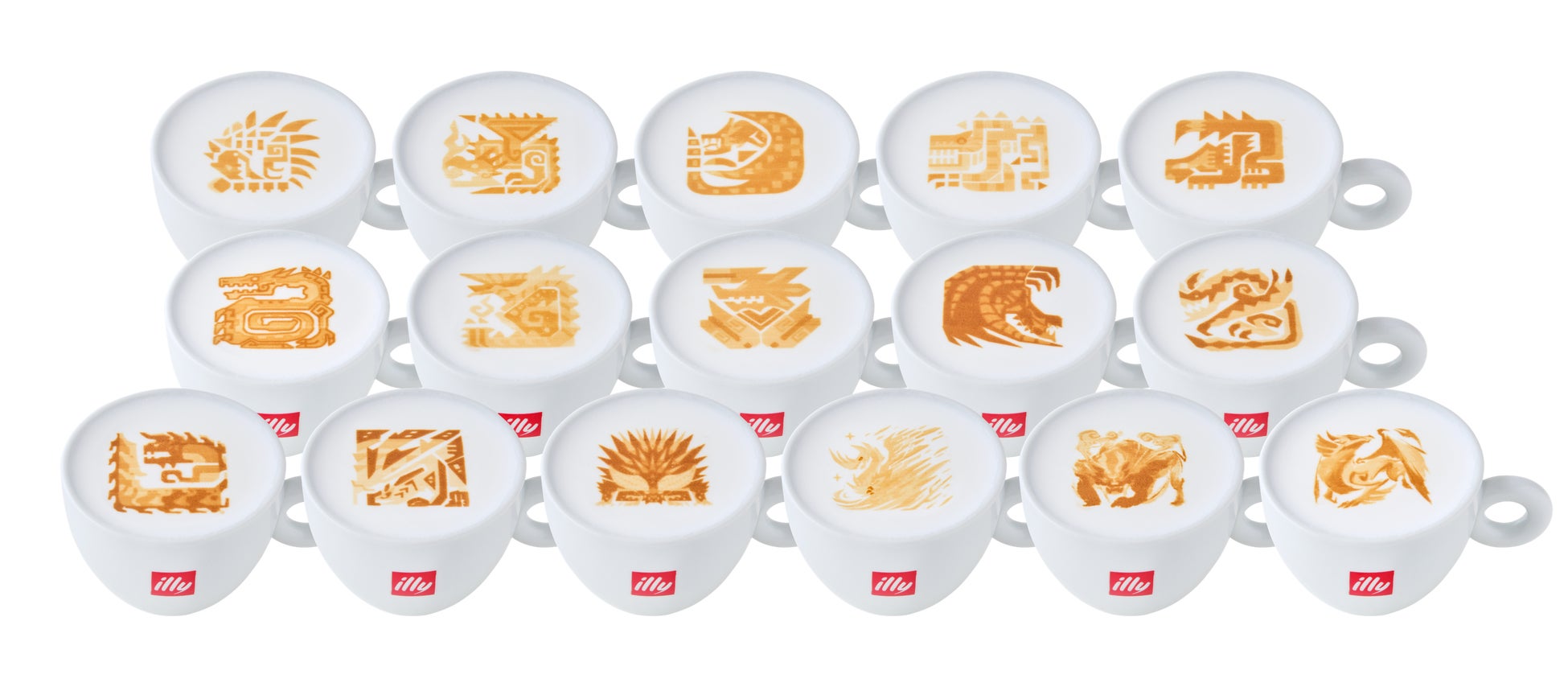 大狩猟展ARに登場する16体のメインモンスターの アイコンからデザインを選べるカプチーノ。イタリア・イリ―社のエスプレッソ豆を使用した本格カプチーノをお気に入りモンスターと一緒にぜひお楽しみください。