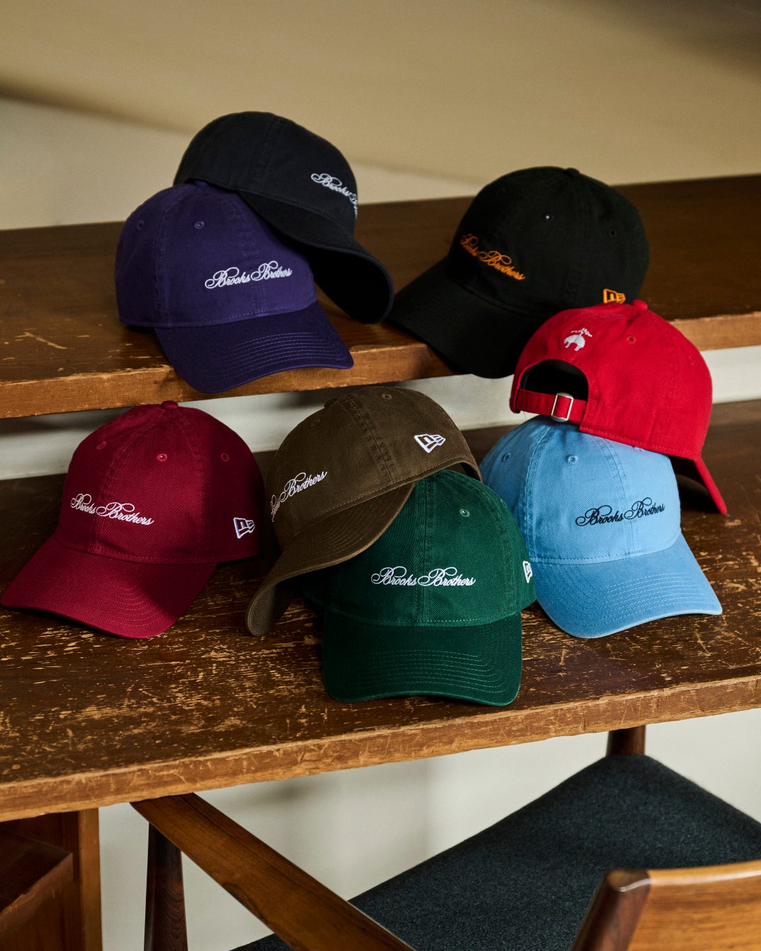 ニューエラ 9TWENTY™をベースにしたコラボキャップを、ブルックス ブラザーズのアイテムとコーディネート
