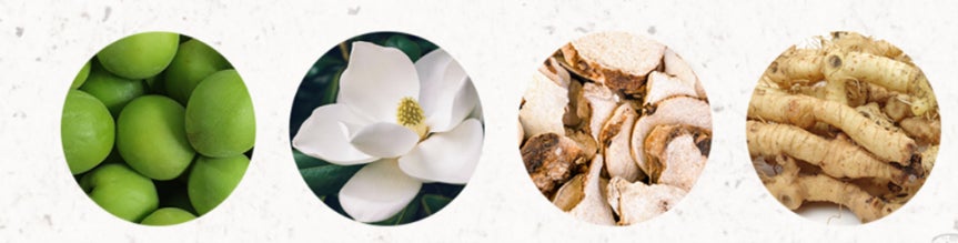 ダメージが蓄積された年末の肌をいたわるために、スキンフードが注目したのは韓国伝統ハーブ。1613年に朝鮮時代国王宣祖の命令で編纂され、400年経った今でも利用されているほか、ユネスコ世界記録遺産にも登録されている書物に記されている「梅(※4)、辛夷(コブシ)(※5)、甘草(リコリス)(※6)、当帰(オニノダケ)(※7)」の4つの植物をピックアップしました。
