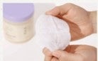 洗顔後、パッドを1枚取り、目と口の周りを避けて、顔全体をやさしくふき取ります。