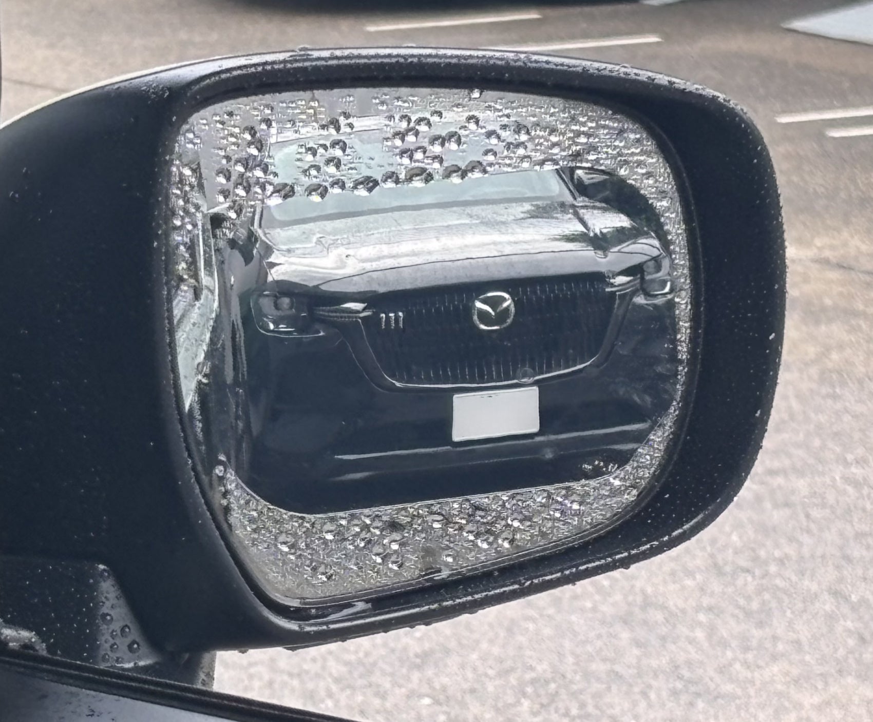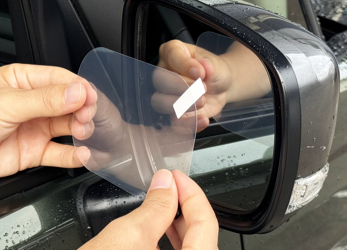 台風や秋雨対策に。雨がつかないサイドミラーフィルムに、大型サイズと車種専用モデルが登場