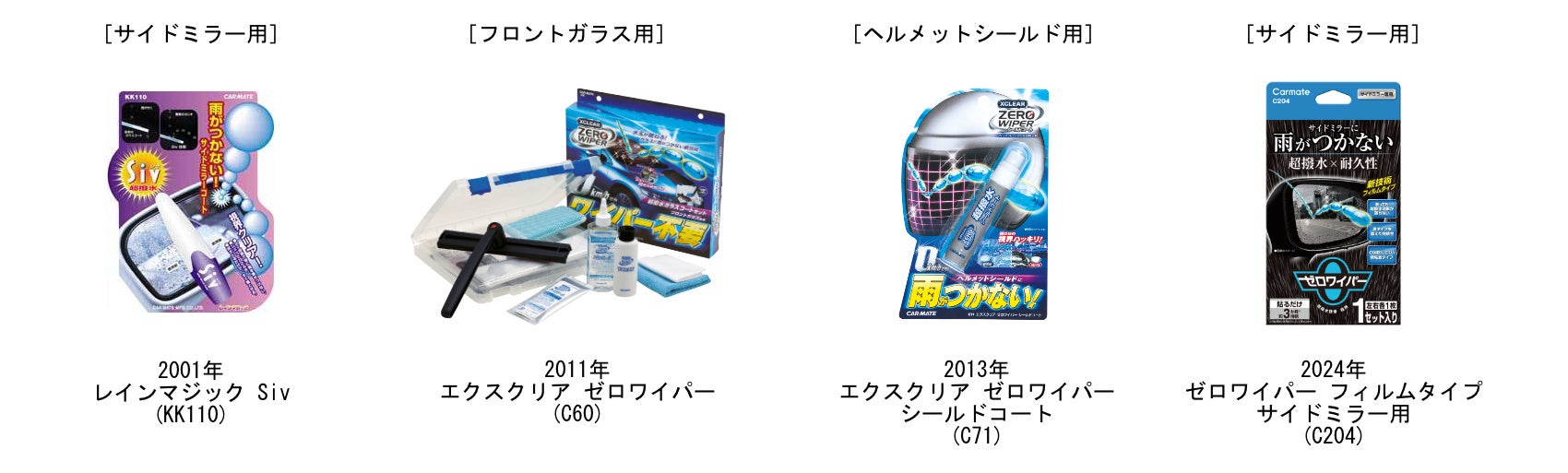 さらに、ドアミラー形状に合わせた車種専用設計の「C801~C805」も新たに展開します。なお、車種専用品については、サイドガラス用もセットで数量限定販売。ニーズを検証し、今後はラインアップを拡大してまいります。