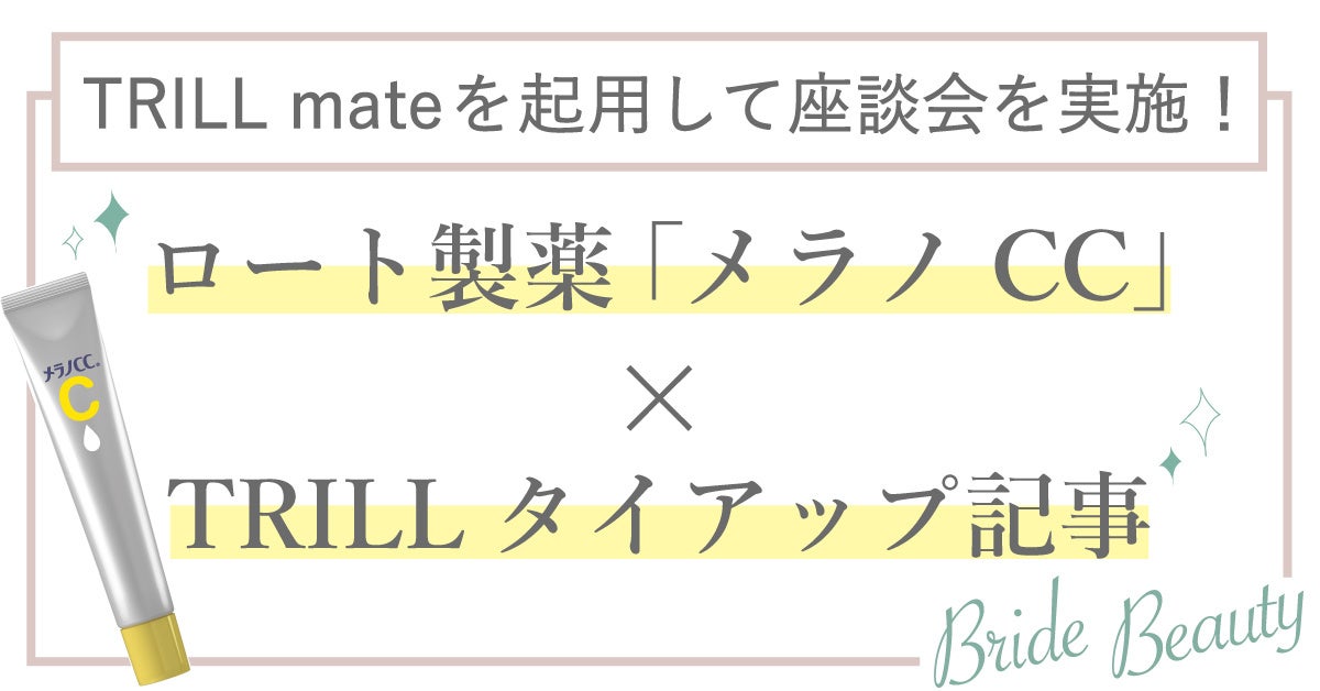 ロート製薬株式会社の「メラノCCシリーズ」の中で、「メラノCC 薬用しみ集中対策美容液」「メラノCC しみ集中対策プレミアム美容液」をプレ花嫁・卒花嫁・ブライダルヘアメイクの3名に体験していただき、花嫁美容に取り入れたいケアアイテムとして紹介しました。