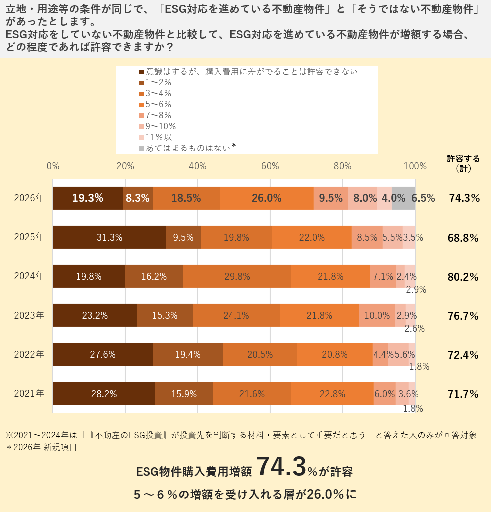 ・ESG物件の価格 5~6%の上昇を許容する層が25%超