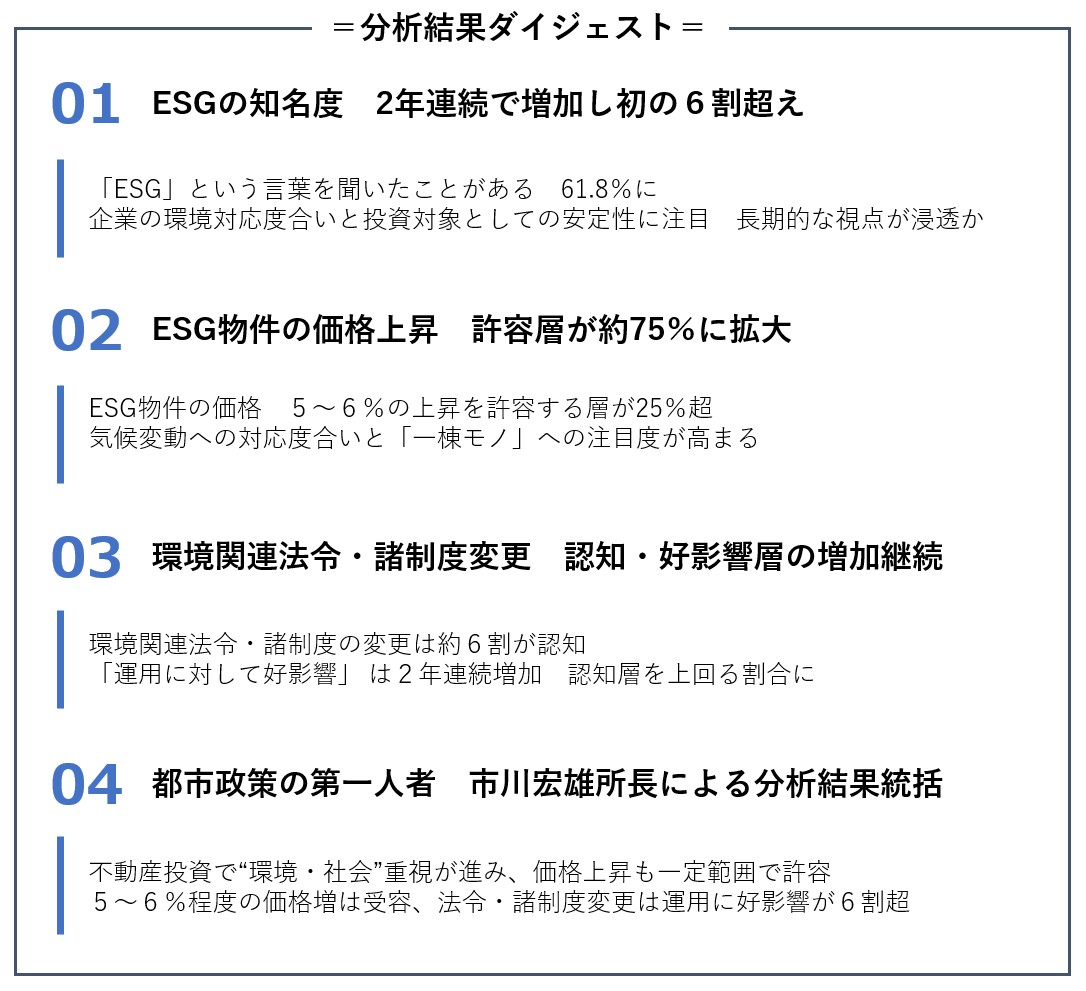 当研究所では、調査・研究の第38弾として、全国の投資用不動産保有者400人を対象に、ESGに対する意識調査を実施しました(本調査は2021年から毎年実施し、今年6回目)。
