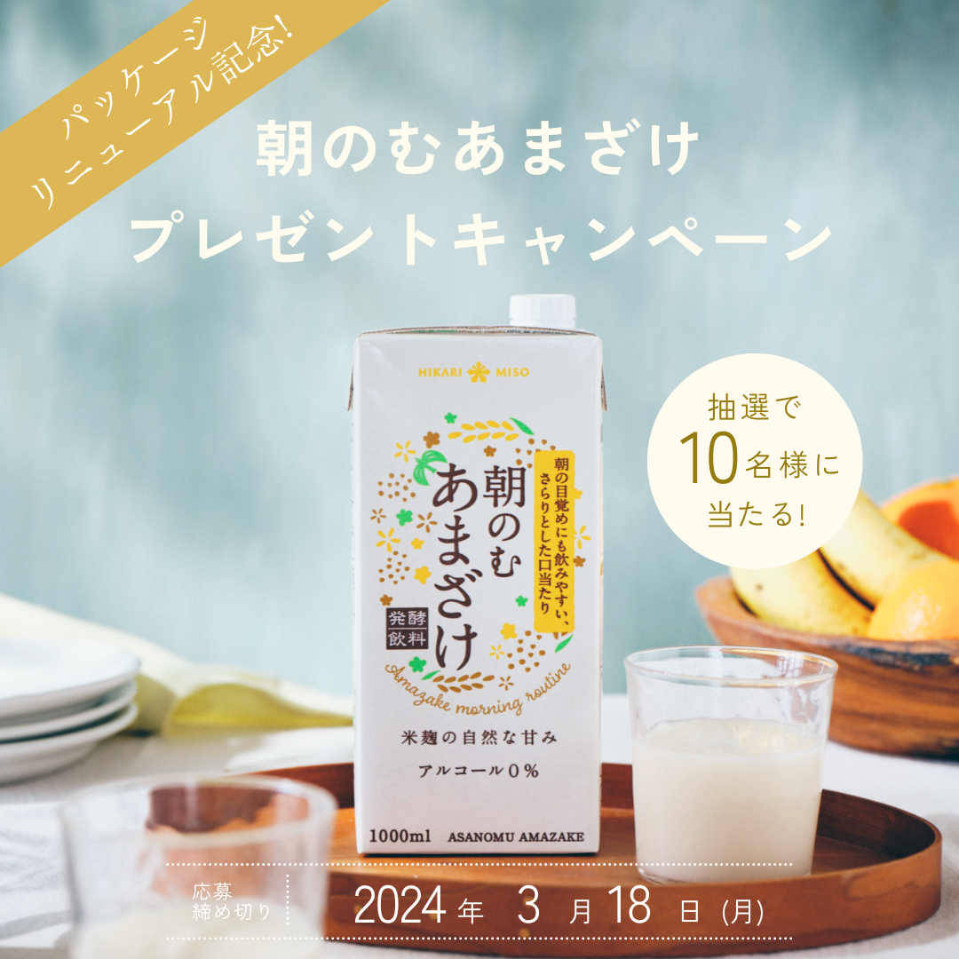 これを記念して、抽選で10名様に『朝のむあまざけ』をプレゼントするキャンペーンを開催します。